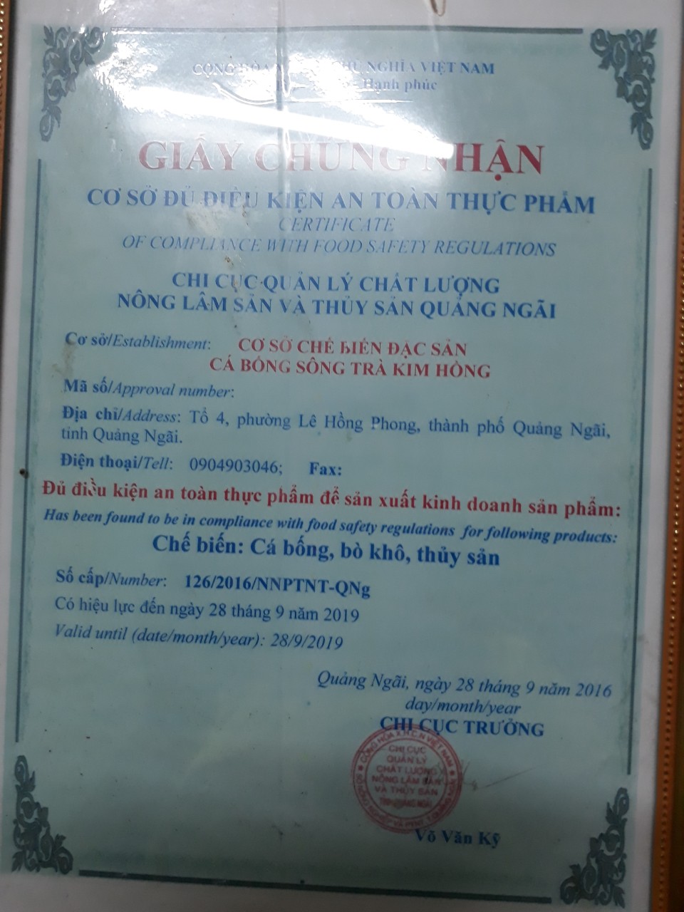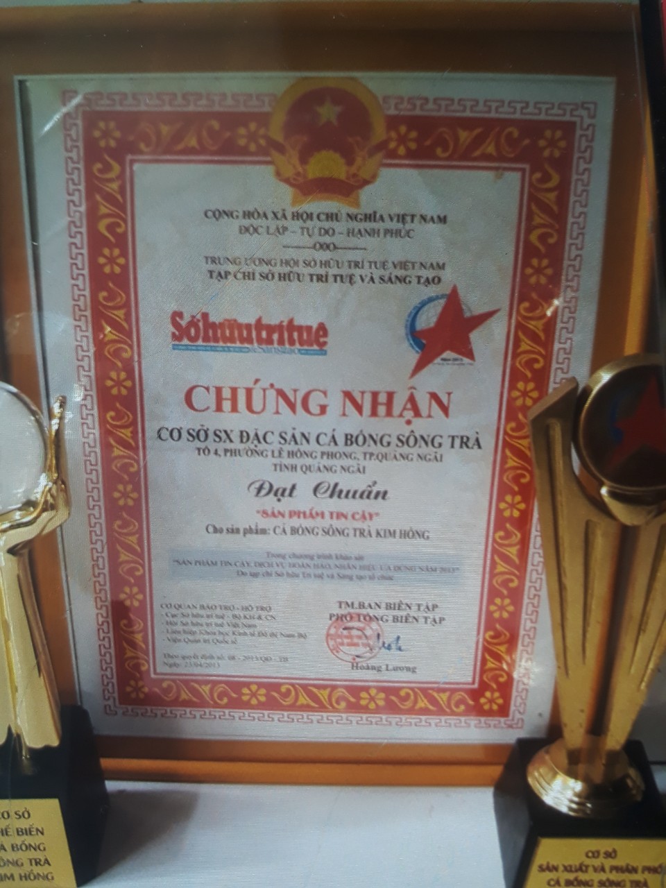 Cá bống Sông Trà KIM HỒNG chúng tôi là thương hiệu uy tín và chất lượng có đầy đủ giấy chứng nhận sản xuất cũng như vấn đề an toàn vệ sinh thực phẩm. Từ khâu chọn nguyên liệu đầu vào và đến thành phẩm chúng tôi luôn kiểm tra chặc chẽ, thương hiệu KIM HỒNG nói không với phụ gia vì sự an toàn của quý khách hàng.